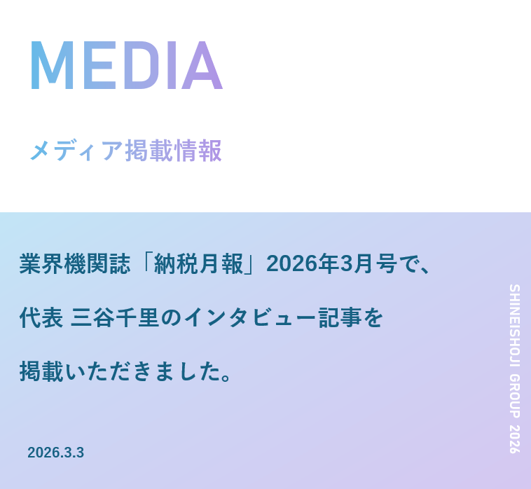 【メディア掲載情報】「納税月報」2026年3月号に掲載 | 代表インタビュー記事 News 2026.03.01